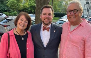 Colton Lott (2015), pictured here with fellow trustees, Cynthia Lindner (1978) and Paul Steinbrecher, preached for the opening chapel service on September 29, before the House Community participated in a ribbon cutting for the renovated second and third floors of the House. He is Senior Minister of First Christian Church of El Reno, Oklahoma.